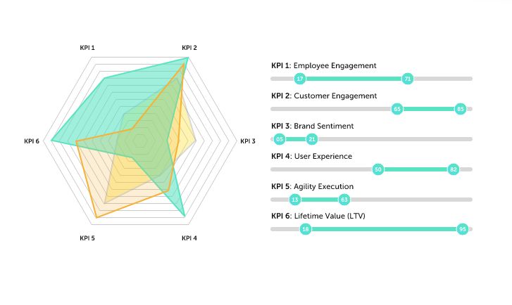 Another alternative for Radar charts is to use a combination of jQuery and Google Charting. The resulting chart does not have a radius or values listed as does the jqChart plugin, but it's just as easy to use. And Here's an example of where you can find it: Chart Types.